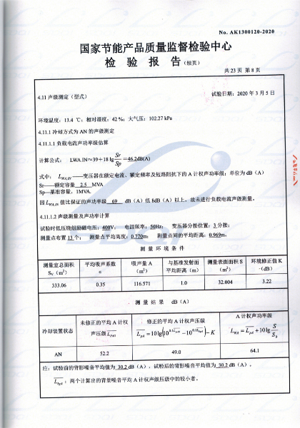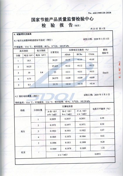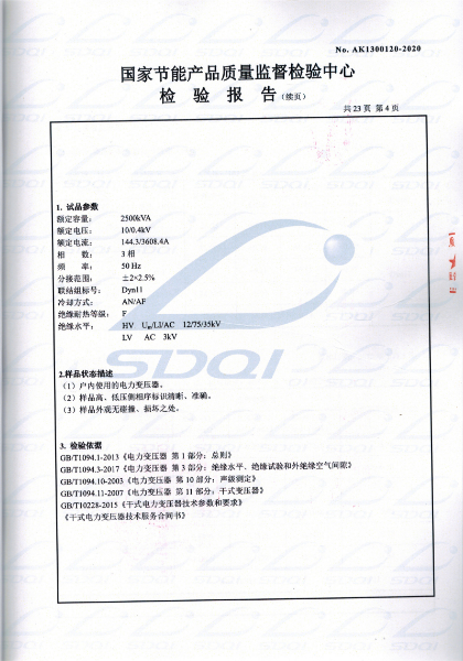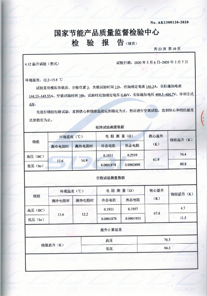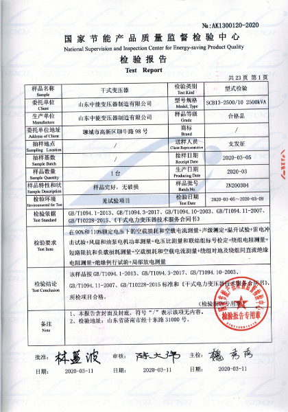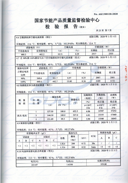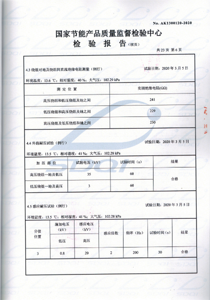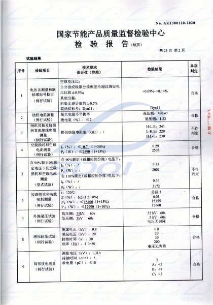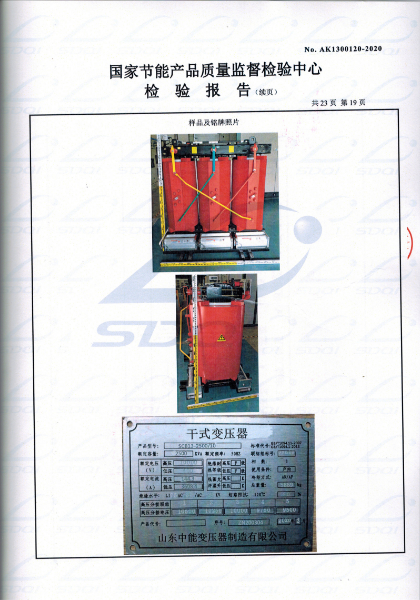 國家節能產品質量監督檢驗中心 查詢編號:AK1300120 查詢備案證書號:GJJN-B-K2000120 批準日前:2020-03-11 公司名稱:山東中能變壓器制造有限公司