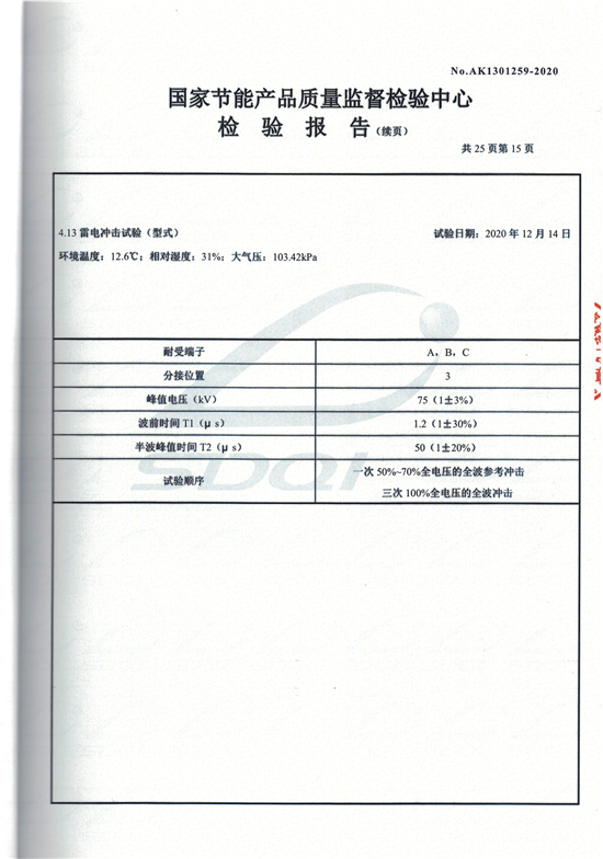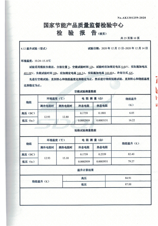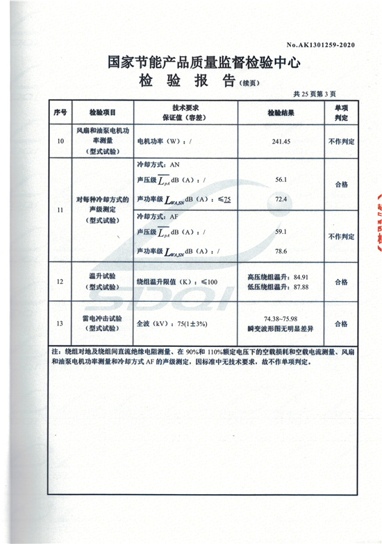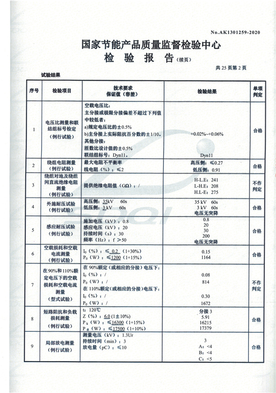 SCBH15非晶合金干式變壓器檢驗報告